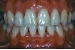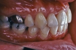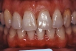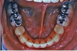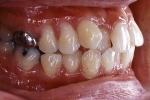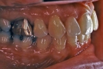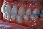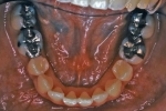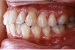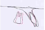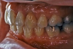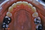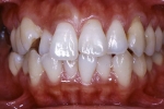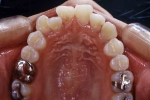 奥歯の位置関係には異常はないが(classⅠの意味)、配列に凸凹がみられるケース。ALDとはArch length Discrepancyの略で、凸凹の程度を示す数値。-7mm以上は、一般的な感覚から言ってかなり凸凹していると感じる状態。上下顎前突とは、上も下も前歯が外側に傾いている状態を言う。前歯が外側に傾くと配列は広がるので見かけ上の凸凹は減るという関係が成り立つ。要するに、奥歯はあまり悪い関係ではないが、凸凹がひどいか前歯の傾きが悪いケースを、できれば小臼歯抜歯をして隙間を作って、残った永久歯を再配列して正しい咬合を作ったケースを示せという課題である。
