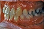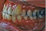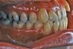 出題の意味:上の前歯が内側に倒れている、あるいは下の前歯が外に傾いていることが原因で反対咬合になっているケースを、抜歯して隙間を作って治して良いというのは、ごく日常的に行われる治療である。定番のケースをどこまで緻密に治せるかが評価の対象になる課題と考えられる。