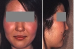 出題の意味:このケースの条件は一般の人には理解しにくいところがある。通常出っ歯というと上の前歯が外に向かっていることを想像するのが普通であるが、U1-SNが90度以下というのは、上の前歯は内側に傾いていることを示している。なんで??。つまりこれは骨格性上顎前突と考えられるもので、上顎が歯並びごと全体が前へ出ていて、それだと上下の前歯があまりにも離れてしまうため、上の前歯が内側に倒れて下の前歯と何とか接触しようとしている状態と考えられる。